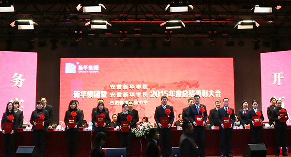 本网讯(王友雅)1月20日上午,新华集团暨pp电子官方网站、安徽新华学校、安徽新华实验中学2015年度工作总结表彰大会在pp电子大礼堂隆重召开。集团、学校领导出席大会,与全体教职员工共同回顾了2015年的工作,并明确了2016年的工作要点与发展方向,同时还对2015年度先进个人进行了表彰。大会由新华集团副总裁、pp电子官方网站副董事长王孝武主持。