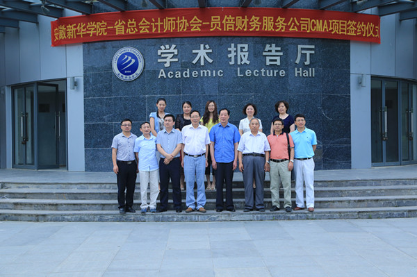 本网讯(通讯员:窦梅鹏)6月15日下午,pp电子官方网站-安徽省总会计师协会-安徽员倍财务服务公司CMA项目签约揭牌仪式在pp电子学术报告厅隆重举行。省督导专员、校党委书记储国定,校长石秀和,安徽省总会计师协会会长王永民、副会长刘成军,安徽员倍财务服务有限公司国员人财体系最高执行人曹国富,CMA资深讲师周桦,高级执行人周满生等领导出席了签约揭牌仪式。财会与金融学院全体教职工、2013级财务管理专业学生代表参加了仪式。签约揭牌仪式由财会与金融学院执行院长操宏华主持。