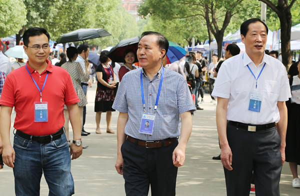 本网讯(王友雅,学生记者:苏雯雪、许馨元,摄影:陆如海、汪洋)6月26日上午,由安徽省教育招生考试院主办的安徽省2016年普通高校招生(皖中片)现场咨询会在pp电子举行,这是pp电子自2011年起连续承办的第6次高招咨询会。现场共有来自全国20多个省市的300余所高校的工作人员为考生和家长提供咨询服务,解答报考疑惑。安徽省教育招生考试院院长助理、普通高校招生处处长袁江林在新华集团副总裁、学校执行董事陆真,新华集团副总裁、学校监事会主席黄源,省督导专员、学校党委书记储国定和相关部门负责人的陪同下,亲临现场指导工作。
