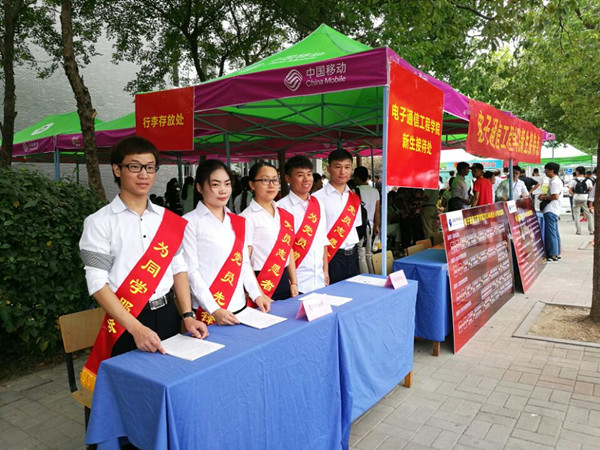 电子通信工程学院迎新现场,学生党员热情地接过新生手里的行李,帮助他们办理各种入学的手续,党员们还结合迎新向新生及其家长介绍入党的条件及流程,宣传党的各项方针政策和习近平总书记系列讲话精神。为了让新生更快更好地入住寝室,财会与金融学院部分预备党员在党总支组织委员蒋毓萍老师的带领下,来到了新生公寓楼,为新生帮助搬运行李并发放物资。学生党员在迎新工作中全心全意为学生服务的精神直接影响到新生对于大学基层党组织的印象,并起到感召新生积极向党组织靠拢的作用。