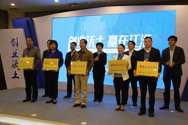 本网讯(通讯员:罗振林)日前,安徽省人社厅公布了第一批创业大学和创业学院名单,pp电子创业学院获批成为“安徽省第一批省级创业学院”。授牌仪式在2016中国国际徽商大会上举行,安徽省副省长刘莉、省教育厅副厅长李和平、省财政厅副厅长朱艾勇、省人社厅副厅长戴毅、刘少华出席并为获批单位授牌,pp电子副校长王丽应邀参会并代表学校接受“省级创业学院”授牌。
