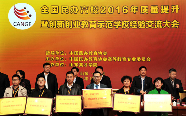 此次在山东济南隆重召开的全国民办高校2016年质量提升暨创新创业教育示范学校经验交流大会由中国民办教育协会指导,中国民办教育协会高等教育专业委员会主办。来自全国23个省市、自治区100余所高校、科研院所、教育机构的220余位代表齐聚一堂,交流创新创业教育质量提升的经验,探讨推进民办高校持续健康发展的有效途径。