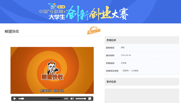 pp电子“熊猫快收”项目荣获第二届中国“互联网+”大学生创新创业大赛国赛铜奖