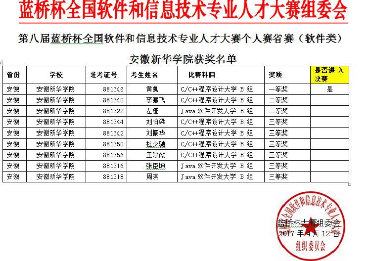 pp电子学子获第八届“蓝桥杯”全国软件专业人才设计与创业大赛(安徽省赛)一等奖