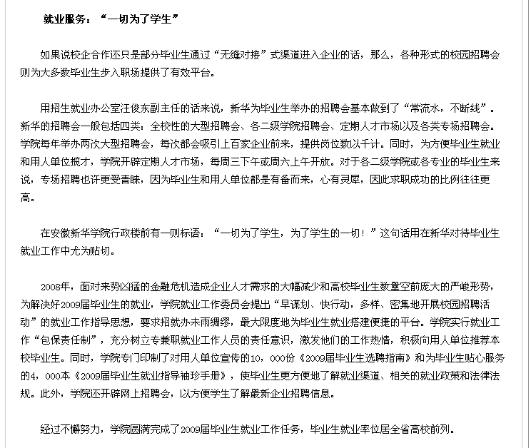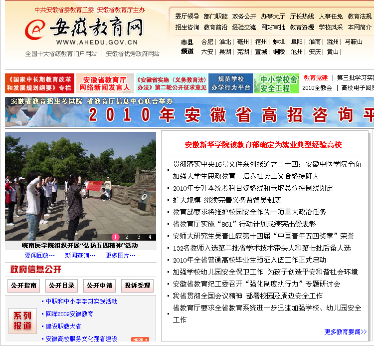 2010年5月6日,安徽教育网在首页对我院入选全国就业典型经验高校一事进行了相关报道。