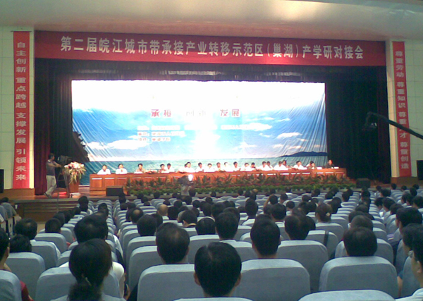 7月2日,由安徽省教育厅、科技厅、经信委和巢湖市人民政府主办的“第二届皖江城市带承接产业转移示范区(巢湖)产学研对接会”在巢湖市行政会务中心隆重召开。我院药学院、土木与工业工程学院相关专家教授和科研处负责人参加了会议。