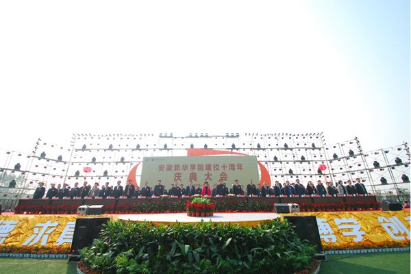 十年栉风沐雨,十年风华秋实。11月6日,pp电子官方网站庆祝建校10周年庆典大会在祥云体育场隆重举行。安徽省人大副主任朱维芳、郭万清、安徽省副省长唐承沛、安徽省政协副主席王鹤龄出席庆典大会,安徽省委宣传部副部长黄传新、安徽省委统战部副部长操建华、安徽省政府副秘书长余华柱,安徽省政协常委、新华集团董事长吴俊保、安徽省发改委副主任余群、安徽省教育厅副厅长李和平、安徽省科技厅副厅长王洵、安徽省经济和信息化委员会副主任吴晓明、安徽省人力资源和社会保障厅副厅长林海、共青团安徽省委副书记王琦、徽商银行董事长王晓昕、安徽大学校长程桦、中国科技大学党委副书记鹿明、合肥工业大学党委副书记张效英、中国农业银行安徽省分行副行长程春峰、合肥市委常委、统战部部长张进、合肥市人大副主任郭超、合肥市副市长、安徽大学副校长吴春梅、合肥市高新区管委会主任李兵、合肥市公安局局长程翰、新华集团副董事长吴伟、督导专员、pp电子官方网站党委书记方向明、pp电子官方网站院长王成福等在主席台前排就座,应邀参加庆典大会的省市政府各部门负责人、各兄弟院校代表、合作企业代表、新华集团各单位负责人和pp电子官方网站领导也在主席台就座。