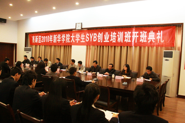 高新区人事劳动局劳动管理处处长俞新苗首先向广大参训学员介绍了SYB创业培训班的具体情况。接着,来自商学院的陈新凤同学代表参训学员发言。学院副院长马凤余代表学校和学员表达了对高新区人事劳动局和培训老师的诚挚谢意,并要求学员要珍惜来之不易的学习契机,增强纪律意识、团队意识,努力提升就业创业能力。