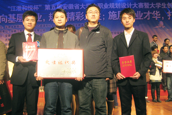 12月19日至20日,在由省教育厅、省人力资源和社会保证厅、共青团安徽省委等部门联合主办的“江淮和悦杯”第五届安徽省大学生职业规划设计大赛暨大学生创业大赛总决赛中,我院文化与新闻传播学院学子张博、洪亚飞均以优良成绩荣获银奖,学院获得“最佳组织奖”。