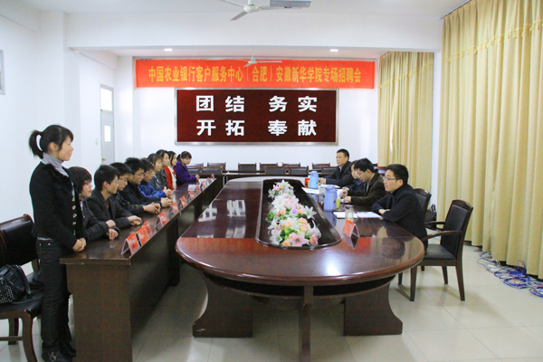 中国农业银行作为国内最大的银行卡发卡机构,拥有丰富的银行卡经营管理经验和良好的业务发展格局。信用卡中心成立以来大力推进产品创新和市场拓展,取得了显著的成绩,在多家国际卡组织的行业评选中荣获奖项。客服中心(合肥)作为中国农业银行一体化客服中心体系的重要组成部分,挂靠信用卡中心管理,主要职能是为该行信用卡客户提供电话银行服务。根据中国农业银行建设发展需求,现在pp电子官方网站校园内筹建合肥地区客户服务中心,并将该中心作为我院实习实训就业基地。此次面向我院毕业生举办专场招聘会,拉开了学院校银合作的序幕。