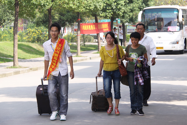 “我车门还没打开,就看到一群孩子跑过来,下了车,我还没弄清楚情况,手里的行李就被这些孩子接了过去”,来自淮南寿县的张叔叔在了解情况后笑着对记者说。张叔叔是从新亚汽车站下车的,看到我们的校车在车站,因为心情急切,想尽快赶到学校给孩子办理入学手续,就等不及校车出发自己坐车来了学校,一路的忐忑在看到我们的志愿者之后就散去了。“学校很大,人很多,又受到志愿者的接待,就感觉学校还不错,如果没有志愿者,真的找不到办理手续的地方,现在孩子正在和志愿者一起缴费,真的很感激”,张叔叔在家长休息区等待孩子时激动的对记者说。