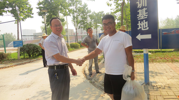 李金星一行走访了公寓楼、科研办公楼、二期食堂、体育场、轮滑场等项目现场,详细了解了工程项目进展情况,对目前连续高温天气仍奋战在校园建设工作战线的工人表示衷心的感谢和亲切的慰问,并要求各项目部做好防暑降温相关工作。