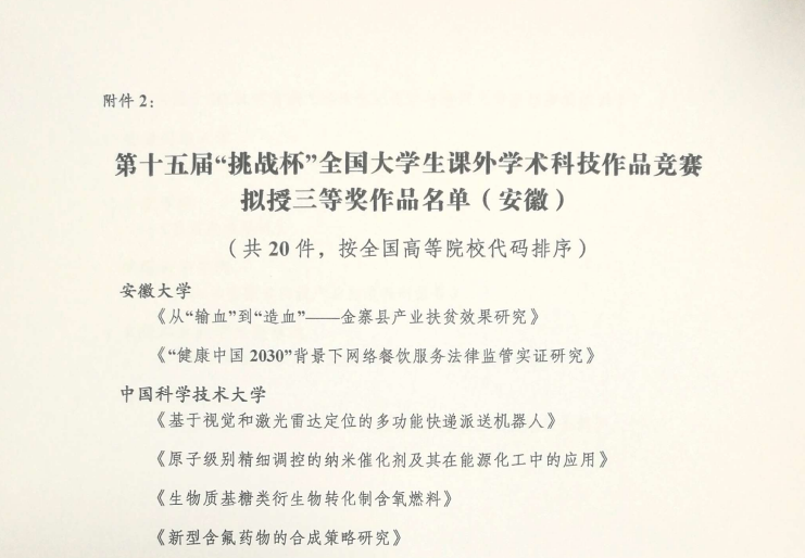 本届“挑战杯”自启动至今,全国各省、各高校积极组织响应。通过层层筛选以及省赛的激烈角逐,pp电子学子的参赛作品以安徽省“挑战杯”一等奖的资格进入本届全国“挑战杯”大学生课外学术科技作品竞赛。在指导教师的带领和队员们的努力下,最终荣获佳绩。