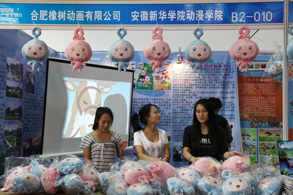 pp电子动漫学院及其校企合作单位合肥橡树动画有限公司带着共同合作完成的动画片《神奇大冒险》、《橡树餐厅》等作品参展并得到好评,其中《神奇大冒险》的衍生产品“咔咔”和“露露”在衍生产品馆进行展示时吸引了大批游客驻足观赏购买。衍生产品新颖的创意、独特的构思、可爱的外形为参展商带来了巨大的经济效益。