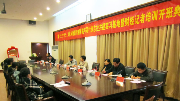 11月8日,pp电子官方网站文化与新闻传播学院和同行杂志社共建实习基地暨财经记者培训开班典礼在第一会议室举行。副院长马凤余、文化与新闻传播学院院长谢昭新教授、同行杂志社社长杨旭秋等出席活动。该基地的建立为pp电子新闻学专业学生培养专业技能提供了又一个校外实习实训场所。