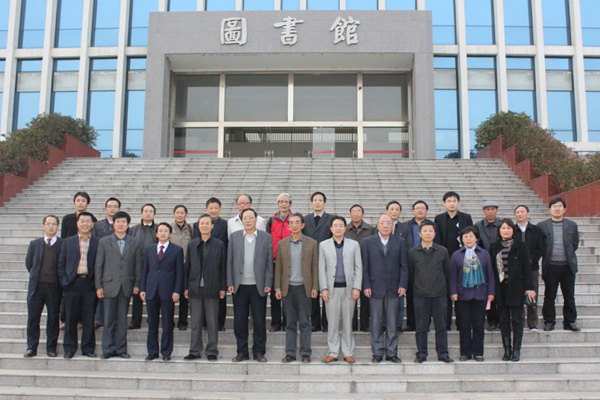 (校领导在河海大学文天学院图书馆前合影)
