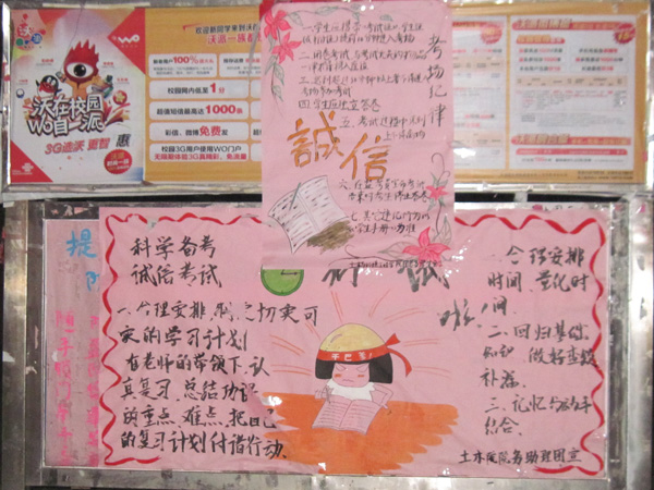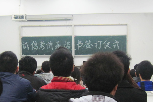 为此,土木与环境工程学院各班相继召开主题班会,开展诚信考试为主题的教育活动,将考前准备和考试诚信作为本月的板报主题在教室张贴;同时为了营造良好的考前氛围,土木与环境工程学院团总支、学生会和助理团等学生组织将考试要求和考前的复习方法通过漫画的形式告知每位同学。为了加强考纪教育,让每一位同学都熟悉考试流程和遵守考场纪律,本月初,全体在校生班级组织开展了诚信考试承诺活动,各班班长、团支部书记集中庄严宣誓承诺诚信考试。全体土木与环境工程学院的学生签订了《pp电子官方网站土木与环境工程学院考试诚信承诺书》,并将承诺内容张贴在班级的宣传栏时时提醒。