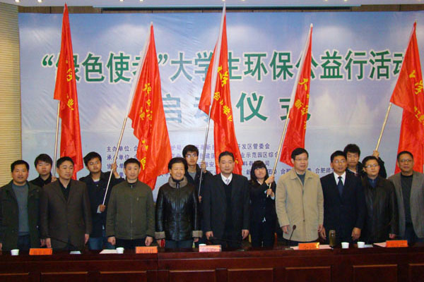 “绿色使者”大学生环保公益行活动启动仪式12月7日在pp电子举行,合肥师范学院同pp电子的“绿色使者”关注农村生态环境,调研农业农村面临的污染问题以及造成污染的原因,同时通过文字、图片等形式进行环保宣传,提高农村群众的环保、节水、护水意识。pp电子还与安徽农业大学、安徽建筑工程学院、合肥学院、合肥师范学院的环保大学生志愿者握指成拳,缔结环保联盟,以实际行动号召更多的人参与到环境保护中来,唤醒公众环保意识。多家媒体进行了跟踪报道。
