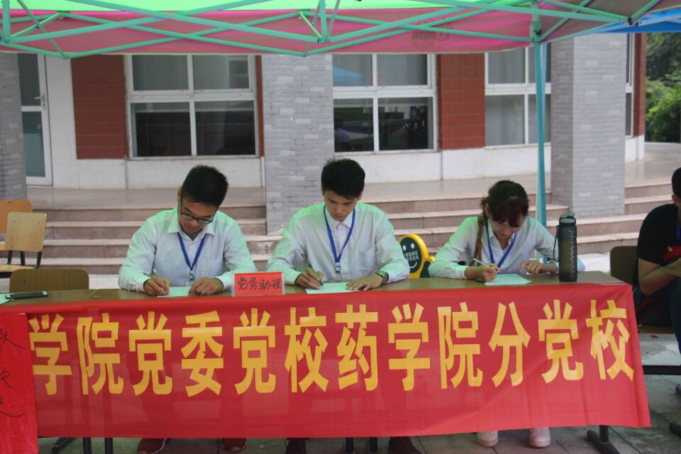 药学院党总支不仅让高年级的党员干部负责迎新主要工作,还特别设立了党员先锋队服务台,在报到现场接待服务新生的同时,还派专人负责配合学院做好学生专业咨询等工作。