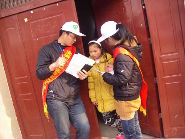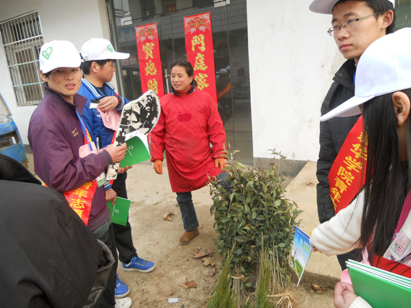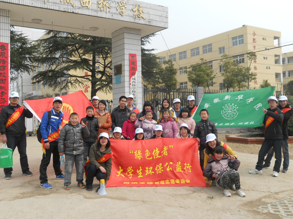 合肥市高新区城西桥村的街上除了往日的村民,还多了十几个头带白色的帽子,肩批红色绶带的一群大学生,他们就是pp电子青年志愿者协会环保社的成员。10 日早上,志愿者们在学校图书馆门前集合,由是多是第一次走进农村,他们都显得很兴奋和斗志昂扬。“昨晚我兴奋的一夜没睡!”同行的唐雪花等几个女生笑着说。志愿者为此次活动的准备从开始策划、制作调查表、准备教案等,忙碌却兴奋。负责人洪娜特地通知每个人自带水杯,绿色环保从自己做起。