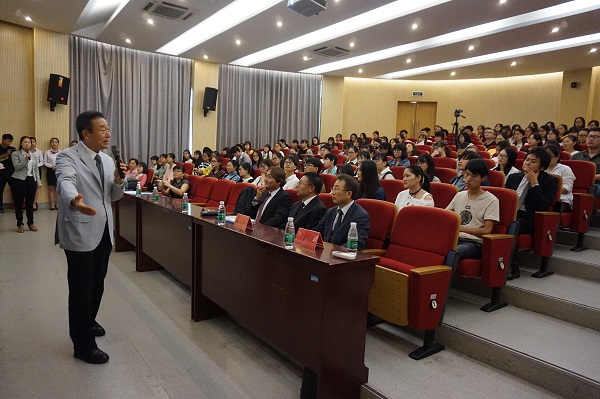 双方会谈结束后,佐藤洋治为pp电子师生作题为“亚洲共同体愿景:世界终将融为一体”学术报告。外国语学院执行院长邵玲、副院长王志宏及日语系师生100余人列席并聆听了本次报告。