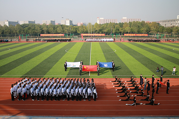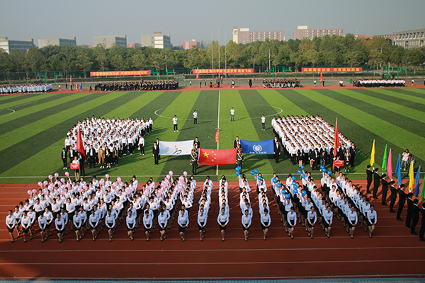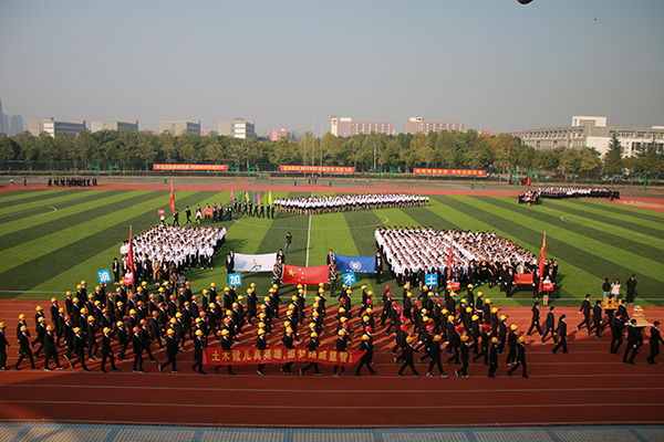 首先入场的是商学院队伍,精神抖擞的他们迈着强健有力的步伐,手持文件夹,大声呐喊着“激情商院,魅力无限”的口号;文化与新闻传播学院方阵前,16名女生以热情洋溢的恰恰舞步和整齐划一的“一字马”展示出大学生的青春气息;电子通信工程学院学子的创新作品——带有标语的六轴飞行器和无人机在体育场上空盘旋,体现了pp电子学子的实践能力和创新水平,健美操彰显了生机与活力;土木与环境工程学院的学生们头戴黄色安全帽,手举自制的房屋、桥梁模型,以雄浑的气势印证着他们必胜的决心;跟随三个可爱卡通玩偶入场的动漫学院方阵,挥舞着手中五彩的卡通气球,让人眼前一亮……财会与金融学院、外国语学院、信息工程学院、药学院、国际教育学院和科技学院也分别以创意十足、极具特色的方阵展示着各学院特色和学子们昂扬的青春姿态。