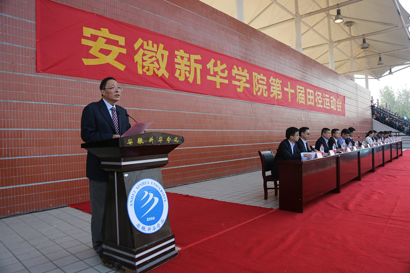 在庄严的升旗仪式后,石秀和致开幕辞。他首先代表学校对本届运动会的顺利召开表示热烈祝贺,向参加运动会的运动员、裁判员和为运动会各项活动付出辛勤劳动的工作人员表示诚挚的问候与衷心的感谢。石秀和指出,本次运动会正值党的十九大胜利召开,目前学校正在大力实施“十三五”规划、加快推进应用型高水平大学建设,组织好各项赛事,发挥好竞技水平,既是对学校办学质量的一次综合检阅,也是激发师生爱校建校热情,增添发展动力,集聚发展合力的有利契机。随后,他就本届运动会提几点希望:希望全体运动员以饱满的热情和激昂的斗志在赛场上赛出水平,赛出风格;希望全体裁判员严肃赛风,严格赛纪,公平公正地履行裁判职责;希望全体工作人员发扬奉献精神,增强服务意识,做好赛事支持和保障。石秀和以“青年兴则国家兴,青年强则国家强”勉励全体学生,将“更快、更高、更强”的奥林匹克精神内化为“厚德、求真、博学、创新”的新华精神和自觉行动。最后,他预祝运动健儿们取得优异成绩,预祝本届运动会取得圆满成功。
