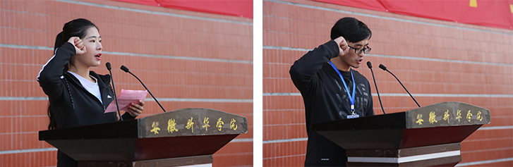 财会与金融学院学生张蕾蕾和通识教育部教师王军分别代表运动员和裁判员进行宣誓。