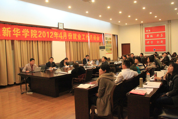 各二级学院分别就3月份就业工作内容及4月份就业工作计划作了交流汇报。随后,李洁简要回顾了三月份招就办就业工作,通报了各二级学院2012届毕业生三月份就业率、考研达线人数、专升本报名、就业宣传报道统计、2012年上半年招聘会安排等事项,部署安排了四月份就业重点工作。