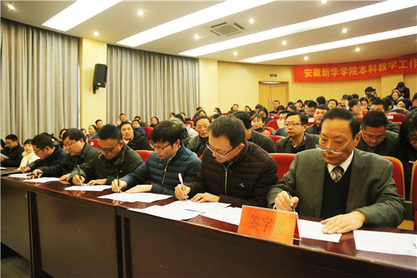 本网讯(通讯员:方骥飞)为了迎接即将到来的本科教学工作审核评估,并以此为契机全面推进本科教学改革、提高本科教学质量,12月15日,pp电子召开了本科教学工作审核评估动员大会暨审核评估培训会。审核评估动员大会在校学术报告厅举行。新华集团常务副总裁、新华学院执行董事陆真,新华集团副总裁黄源,省督导专员、校党委书记储国定,校长石秀和,副校长杨世国、王可、李金星、王丽,校长助理朱兆健出席了会议。各单位、各部门助理及以上管理人员;各二级学院执行院长、院长、副院长(含分管教学、行政院长助理)、教学秘书、实验实训主管、系主任、学科带头人;教务处、评建办公室、发展规划处、教学质量监控办公室、督查督导处全体成员出席了会议。会议由杨世国主持。
