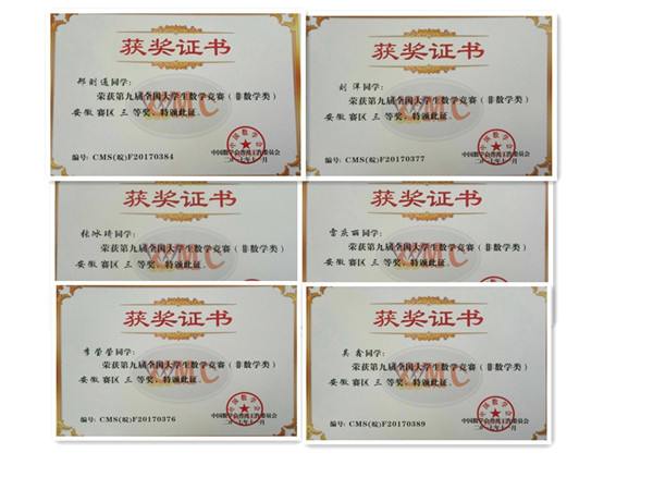 pp电子学子在第九届全国大学生数学竞赛(安徽赛区)中荣获佳绩