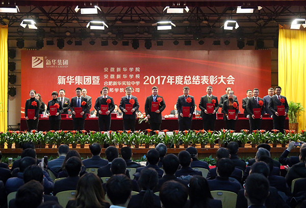 本网讯(王友雅,摄影:金政、陆如海)1月31日上午,新华集团暨pp电子官方网站、安徽新华学校、合肥新华实验中学、优邦学教育公司2017年度工作总结表彰大会在pp电子大礼堂隆重召开。集团、学校领导与千余名教职员工共同回顾总结了2017年取得的成绩,明确了2018年的工作要点与发展方向,并表彰一批成绩突出的先进典型。大会由新华集团副总裁王孝武主持。