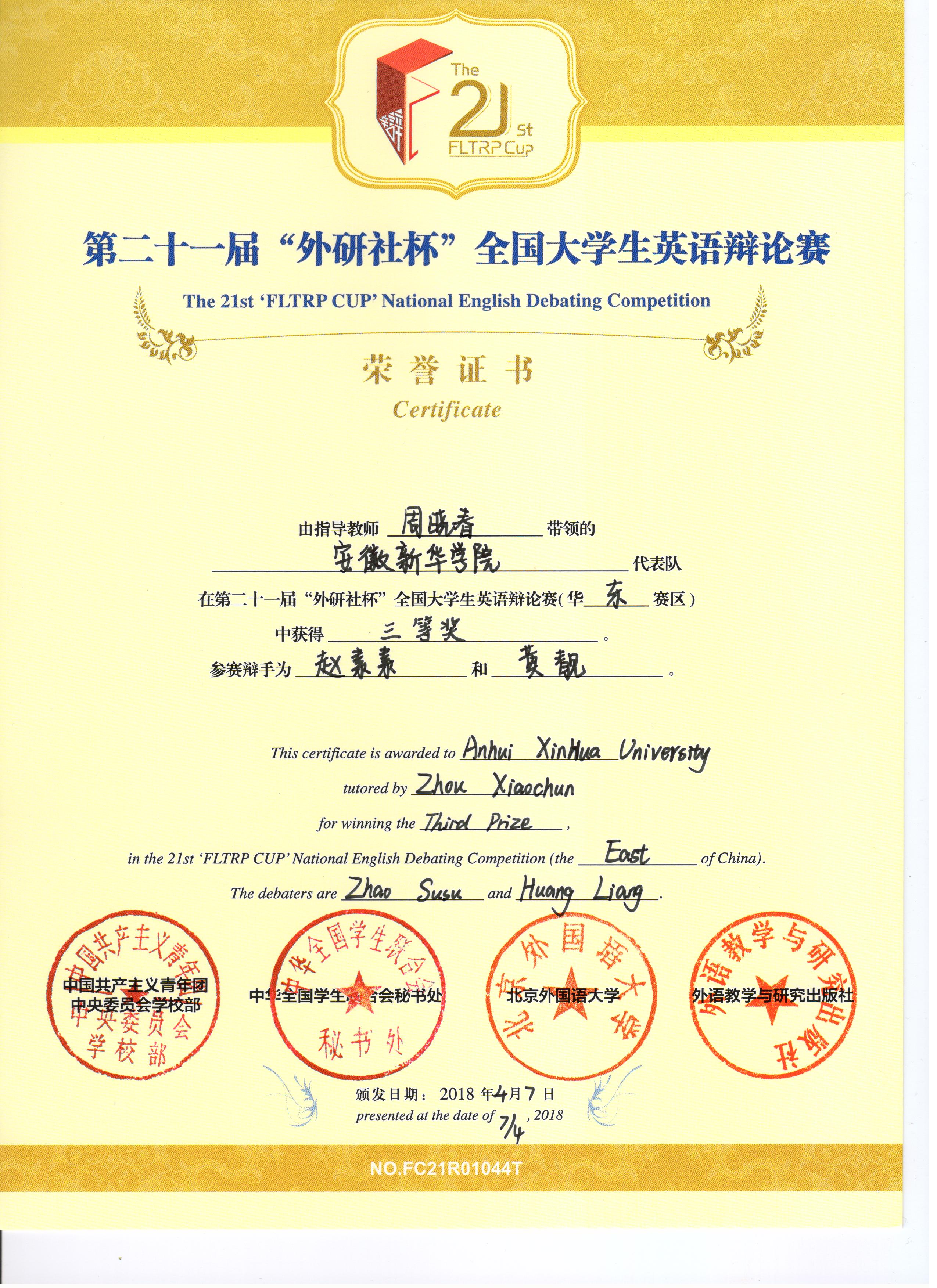 本网讯(通讯员:万媛媛)4月5日至7日,第二十一届“外研社杯”全国大学生英语辩论赛华东地区赛在南京师范大学隆重举行。pp电子外国语学院2016级商务英语专业学生赵素素、黄靓代表学校参加比赛并荣获华东赛区总决赛三等奖;学校荣获本次大赛华东赛区优秀组织奖。
