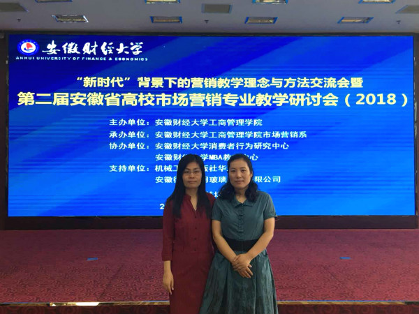 本网讯(通讯员:徐莉)5月25日至27日,2018年安徽省高校市场营销专业教学研讨会在安徽蚌埠举行,本次会议由安徽财经大学工商管理学院主办、安徽财经大学工商管理学院市场营销系承办。商学院市场营销专业负责人郭淑娟和商学院教师徐莉参加了此次研讨会。该次研讨会的主题为 “‘新时代’背景下的市场营销教学:理念与方法 ”。会议邀请了境内外知名专家与省内高校市场营销及相关专业教师围绕议题展开主题报告和研讨。