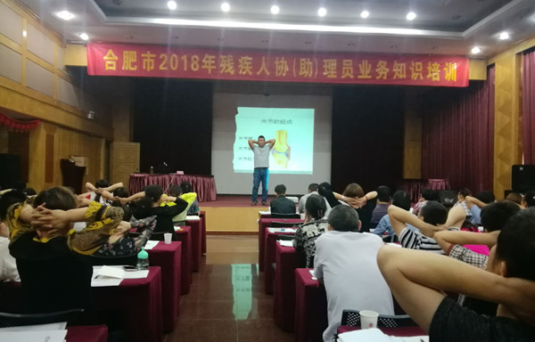 本网讯(通讯员:周凯莉)5月31日,由合肥市残疾人联合会举办的2018年第六届残疾人体育健身指导员培训班正式开班,pp电子通识教育部教师王军作为安徽省残疾人联合会体育健身指导员特聘讲师,受邀为本次培训班作题为“残疾人体育健身的基本知识和残疾人运动损伤的急救和预防”专题讲座。