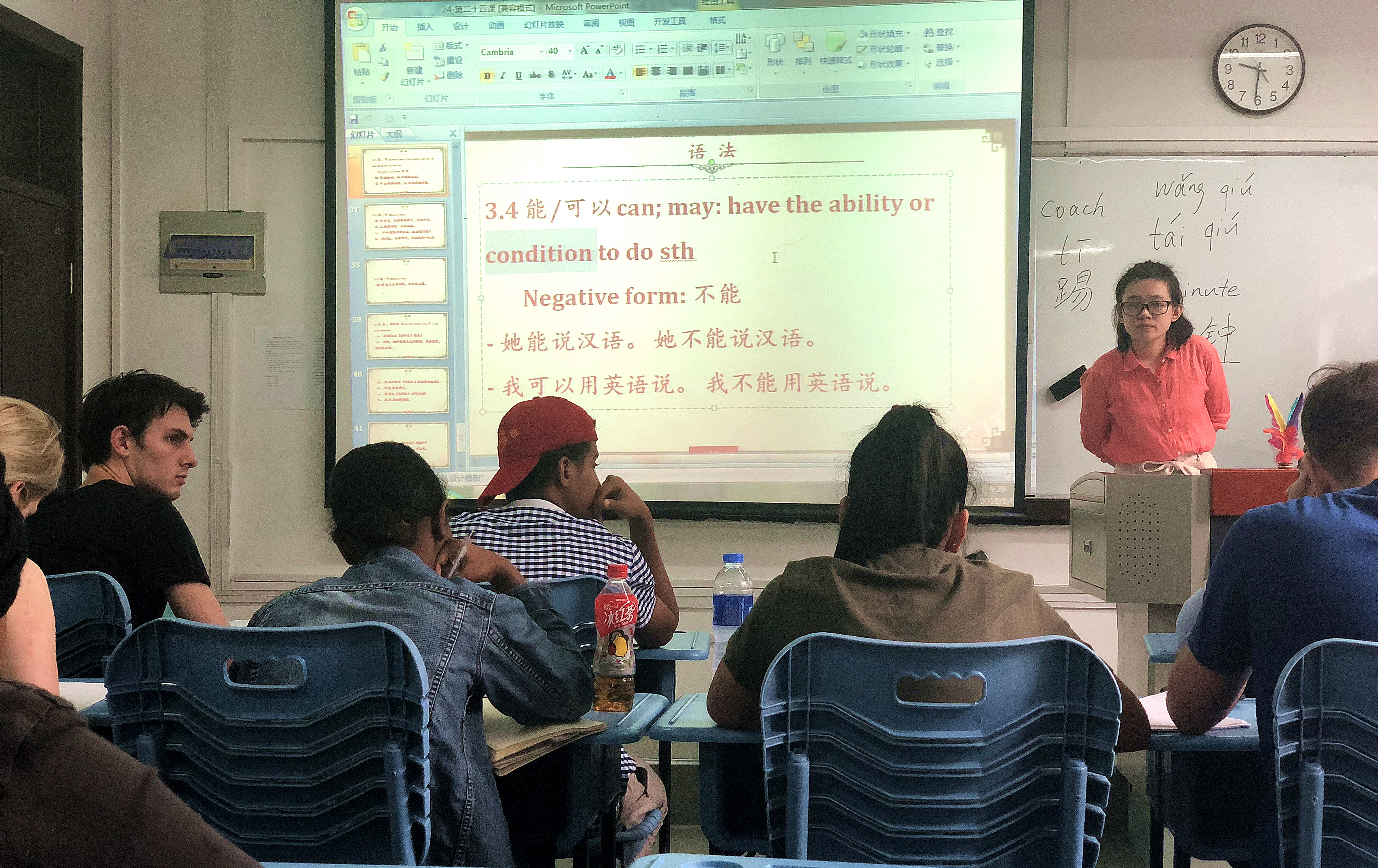 根据前期沟通与安排,考察第一项,各位老师首先听取了两节课的初级汉语教学课。课堂上,来自欧洲、南非、东南亚等不同国家的12位留学生与授课教师展开了以汉语授课为主,以英语解释为辅的授课形式,从字、词、句以及语法等多方面的综合教学, 课堂气氛热烈,教学效果良好。