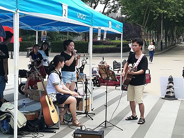 活动当天,学生们在现场布置了五彩缤纷的展板、鲜艳夺目的海报,乐队表演,摊主热情的服务,吸引了众多学生驻足停留挑选物品。义卖物品包括学生的学习生活用品和闲置书籍、乐器等,可以买卖,也可以以物换物,义卖所得及学生所提供物品将全部捐赠给合肥蓝莲花志愿服务队。