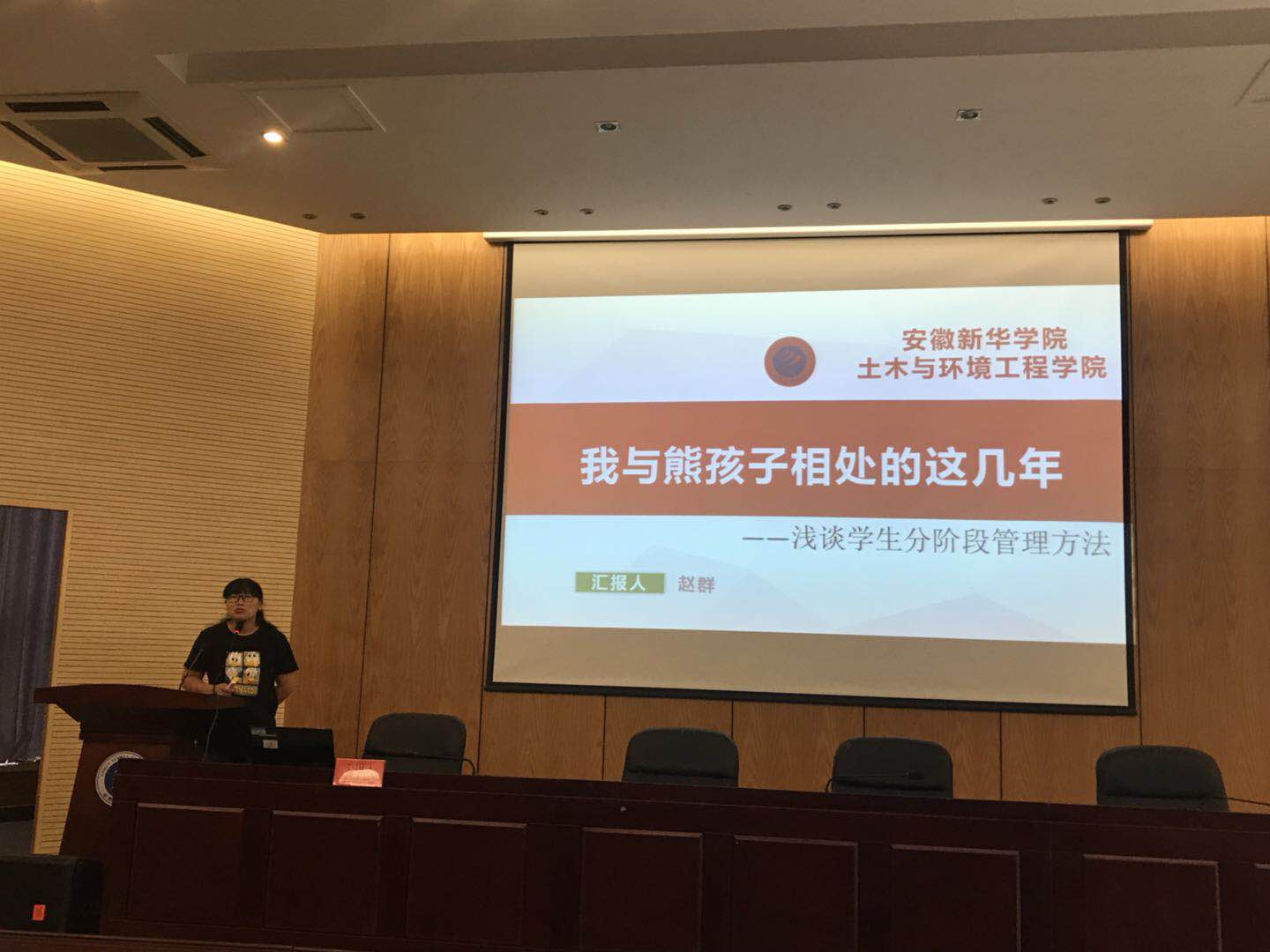 随后,土木与环境工程学院教师赵群作主题为“浅析分阶段学生管理”的工作交流。赵群将大学四年分为“彷徨 呐喊 伤逝 朝花夕拾”四个阶段,她细化梳理了每个阶段的重点工作,用真实生动的案例,风趣幽默的语言详述学生工作的点点滴滴,充分体现了pp电子辅导员老师们细心暖心的工作态度与严谨务实的工作作风。