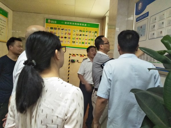 本网讯(通讯员:董梅)为进一步加强学校食堂食品安全监督管理,切实做好饮食安全工作保障,9月6日,合肥市食品药品监督管理局局长胡国春、市高新区食品药品监督管理局副局长孔祥兴、市高新区柏堰食品药品监督管理所所长曹军等一行来校开展食堂食品安全专项检查,校总务处副处长卞国锋及相关饮食管理人员陪同检查。