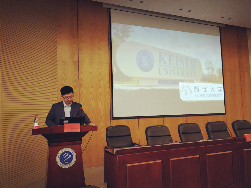 讲座伊始,李旬与在座师生进行热切互动,他以提问的形式开场:“你们是否期待国外学习与生活?”“你们对于国外留学与交换对于人生的意义是否了解?”同学们热烈回应,纷纷举手回答,言语中透露出对于前往美国学习的兴趣与向往。随后,李旬介绍了美国留学生的学习与生活情况,他指出,在多元化的文化环境里,包容的学术氛围、严谨的学术态度与丰富的学术知识十分有利青年的成长。他重点介绍了美国凯泽大学的软硬件综合情况,指出该校在教育品质、校园安全、师资配备等方面均处于弗罗里达州前列。最后,他通过详细举例印证国外学习的经历不仅可以开拓个人视野,同时也有利于中国青年在不同文化体系里塑造个人学习、工作和生活理念。