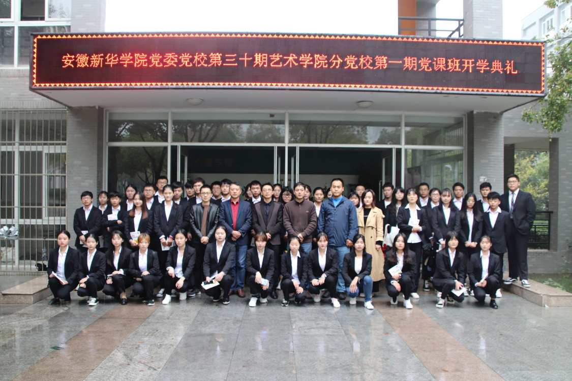 本网讯(通讯员:丁玉云) 为进一步增强学生们对党的认识、提高入党积极性, 10月25日,艺术学院举行了第一期入党积极分子培训班开班典礼。艺术学院党总支副书记朱诵贵、纪检委员教工支部书记余新泳、党总支宣传委员刘刚、艺术学院党总支组织员张大勇、党支部书记、党校班主任及全体入党积极分子出席本次开班典礼。