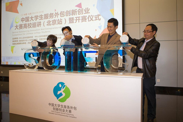 在开赛仪式上,教育部、商务部领导,国家服务外包人力资源研究院领导,《服务外包》杂志负责人,大赛组委会和专家委员会代表,命题企业代表,参赛院校师生代表,新华社、中国日报、国际商报等媒体记者150余人参加活动,共同启动新一届大赛。