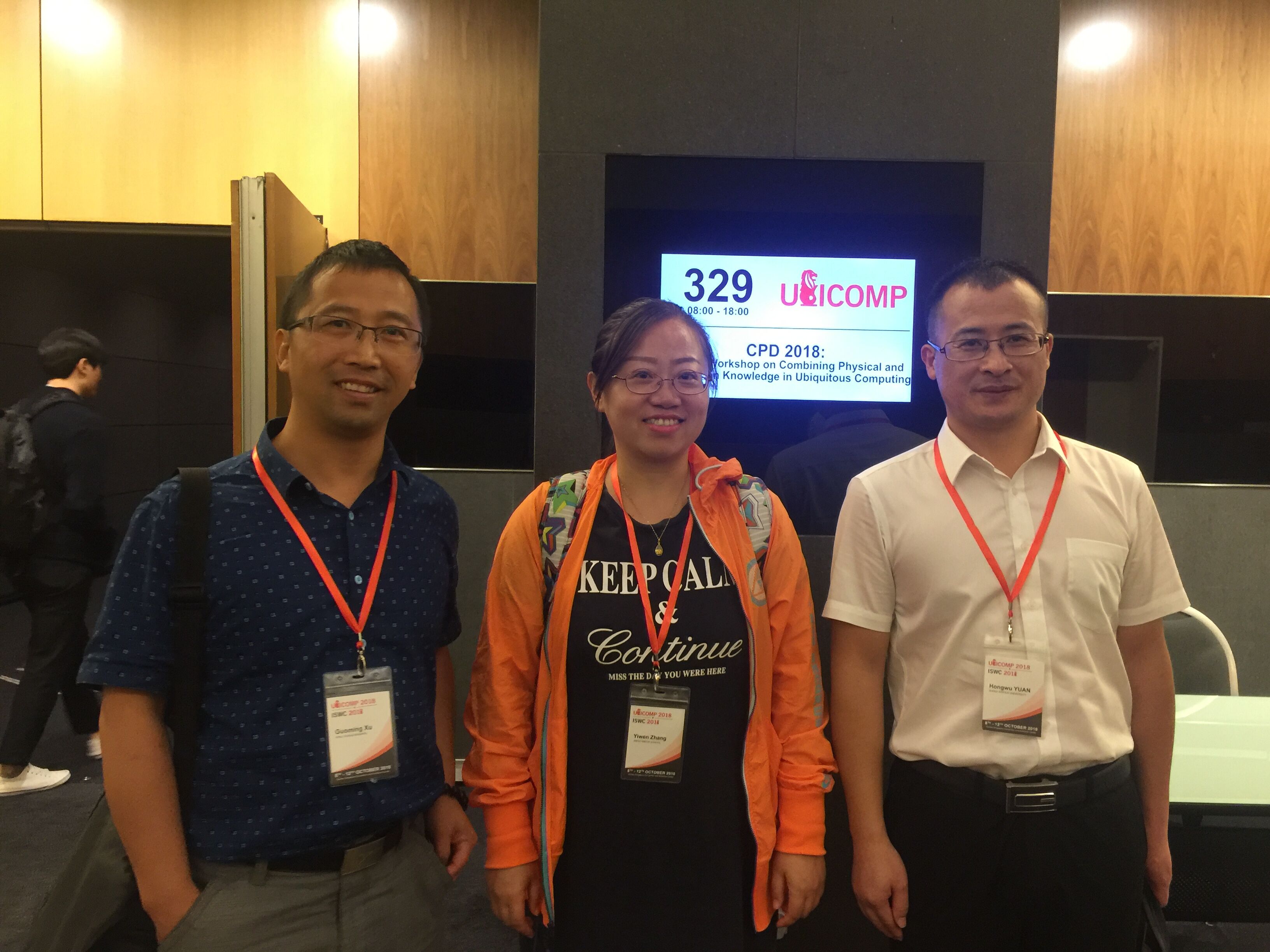 本网讯(文:袁宏武 图:张怡文)10月8日至12日,由美国计算机协会ACM举办的The 2018 ACM international joint conference on pervasive and ubiquitous computing(Ubicomp 2018)会议在新加坡Suntec会议中心举行。pp电子信息工程学院袁宏武、徐国明和张怡文三位老师受邀参加了Ubicomp 2018的“Combing Physcial and Data-driven Knowledge in Ubiquitous Computing”workshop分会。