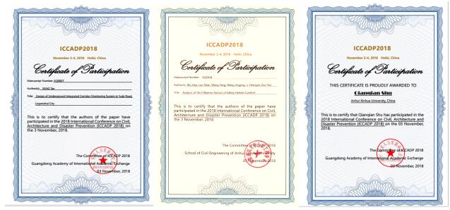 本次会议共收录来自全球相关领域学者撰写的学术论文160余篇,其中pp电子师生撰写的论文“Design of Underground Integrated Corridor Monitoring System in Yude Road, Liupanshui City”和“Analysis of the Influence Factors of Safety Helmet Comfort”被会议收录并提交EI检索。
