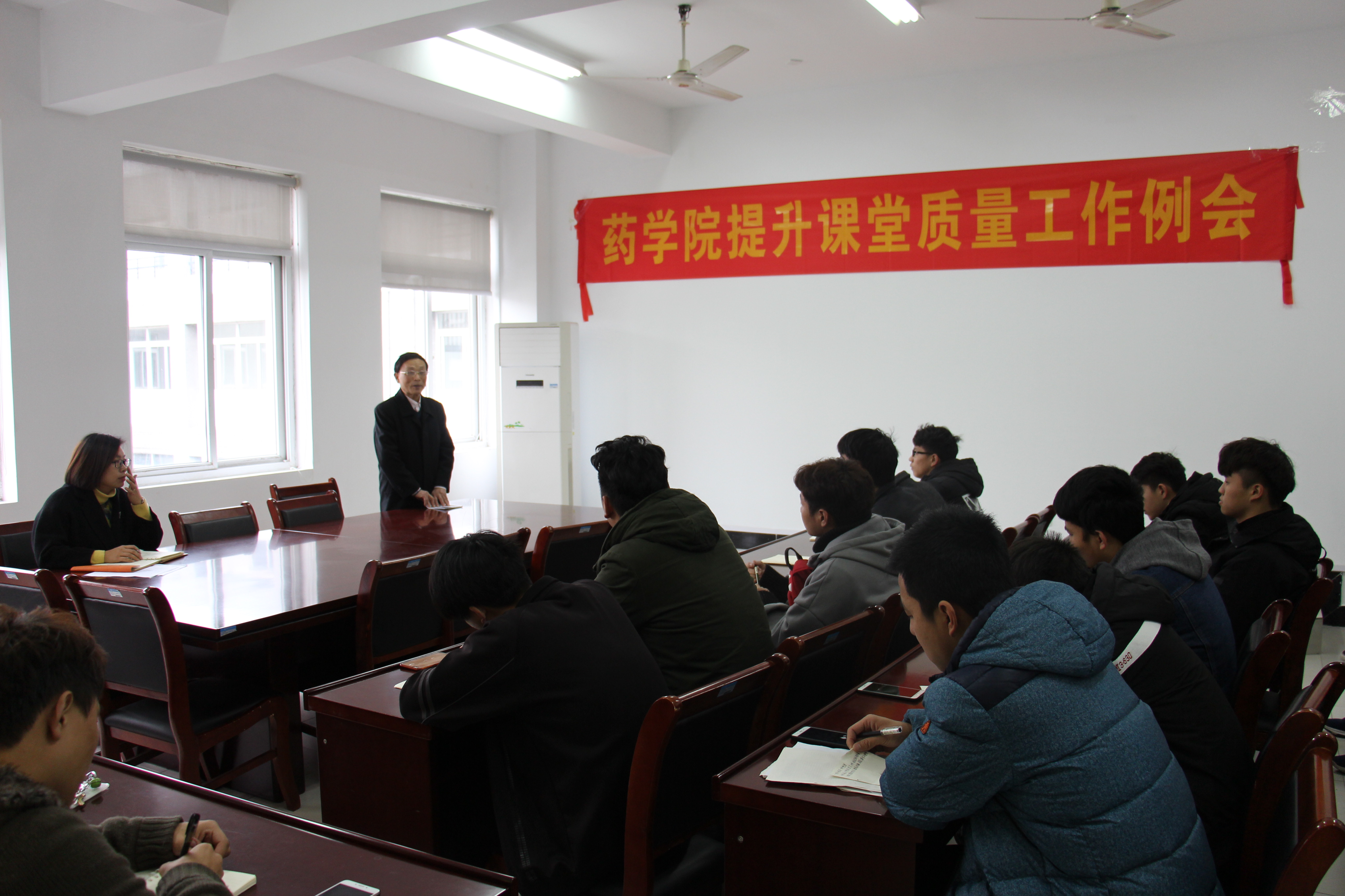 本网讯(通讯员:赵影)为了规范课堂教学秩序,确保提高教学质量,药学院于11月出台《教书育人确保课堂教学质量的若干意见》。为进一步将工作落到实处,药学院实行提升课堂质量工作例会制度。12月5日中午,药学院召开提升课堂质量工作例会。药学院院长张国升出席会议,会议由学管秘书赵影主持,药学院全体班长参加会议。