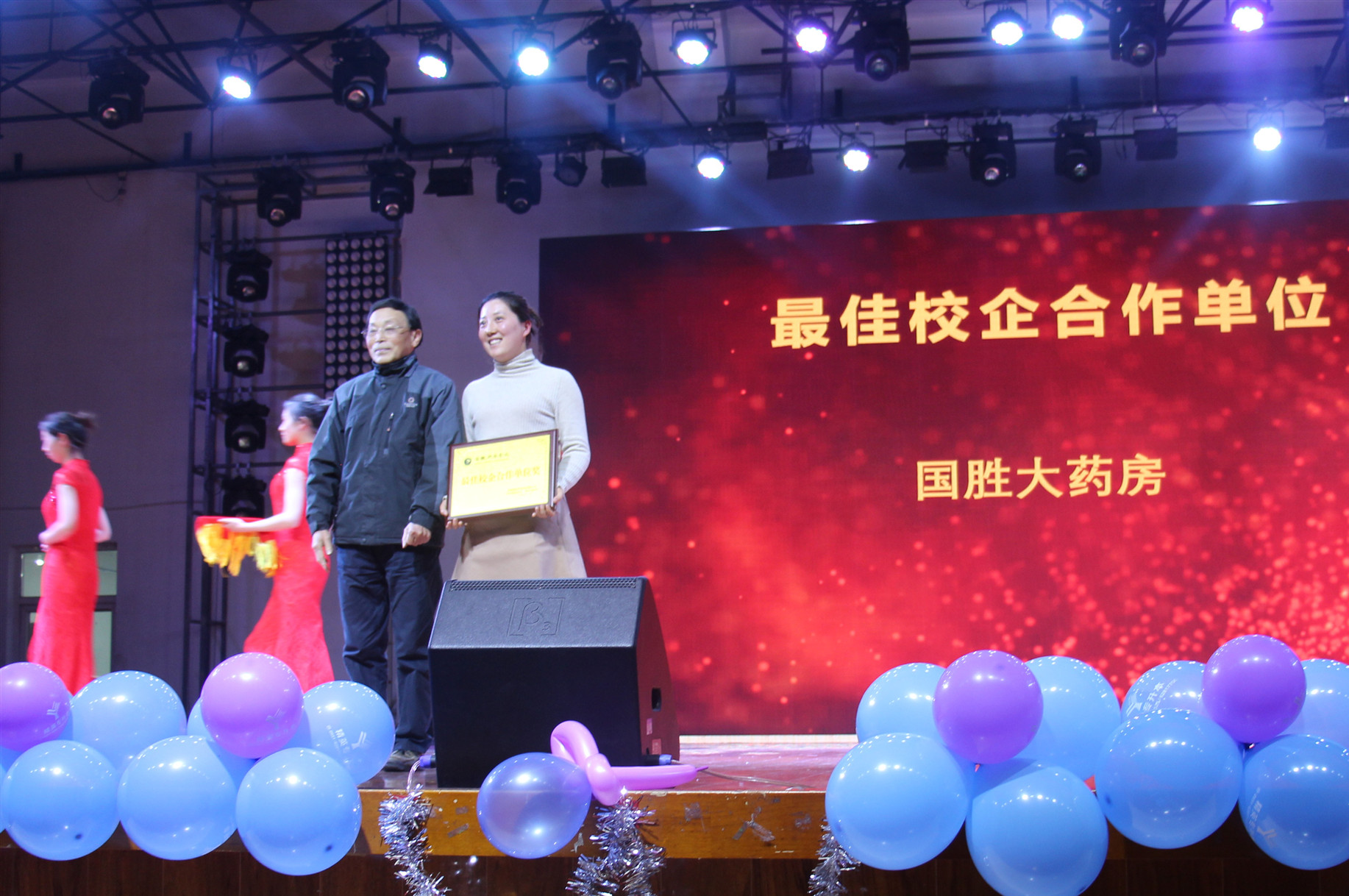 本网讯(通讯员:赵影、刘千会)12月11日晚上,药学院2018“诗药院风华,书时代青春”表彰暨师生联欢会在校大礼堂举行。出席本次活动的有药学院院长张国升,安徽省药品零售行业协会副会长,安徽国胜大药房连锁有限公司董事长何家伦、人力资源部经理沈琴、人事总监孙山,商学院行政副院长王飞,药学院行政副院长余立新,通识教育部主任助理何亚梅,药学院院长助理陶阿丽,合肥高新区志愿服务站主任姬国印以及药学院全体教师。