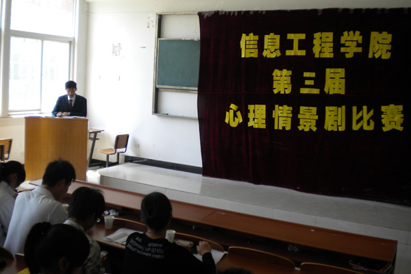 4月23日---5月2日,信息工程学院开展心理情景剧的初赛与复赛,经过宣传,本次比赛活动共有20余支参赛队伍,剧本内容覆盖面较广,有表现大学生迷茫生活、校园恋爱、宿舍矛盾等主题,将同学们在生活中遇到的情感问题表现地形象、生动,再现大学生的思想感情、心理状态以及内心的矛盾与困惑。经过两轮比赛,最终2011级网络工程专业表演的<<当雾迷住双眼>>在比赛中脱颖而出,代表信息工程学院参加pp电子官方网站心理情景剧比赛,获得第三名的好成绩。