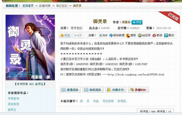 那并不是终点!正因为对梦想永不止步的追寻,李进于2010年12月15日,携新书《御灵录》以两万五千元人民币的稿费再次与纵横中文网成功签约,并被独家买断。