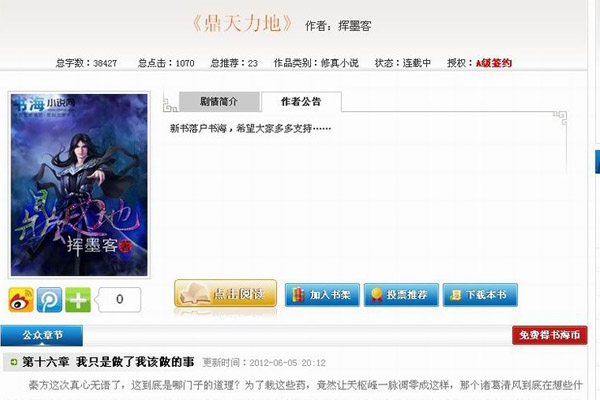 2012年5月26日,李进新书《鼎天力地》与陕西数字出版传媒有限公司(书海小说网)成功签约,并被独家买断。