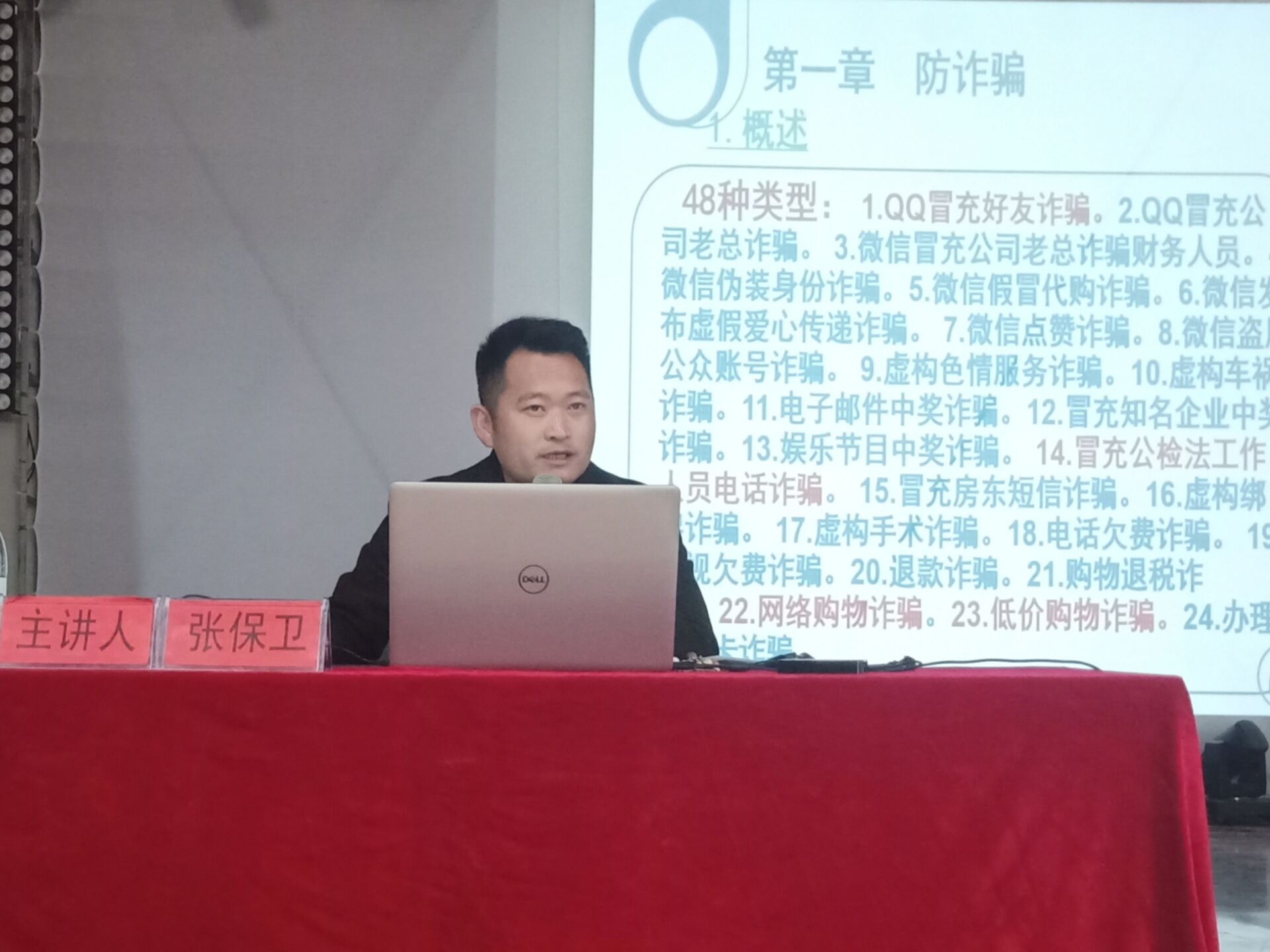 张保卫结合校园发生的真实案例,从关系学生切身的安全问题出发,重点介绍了防诈骗、防盗窃、防火、防性侵等方面的安全知识。在防诈骗方面,他例举了48种类型的诈骗,着重介绍了电信诈骗、刷单诈骗、QQ诈骗等几种学生经常受害的诈骗类型和相应的防御方法;在防抢劫盗窃方面,他从盗窃抢劫发生的特点规律出发,并结合案例分析,提醒大家时刻保管好自己贵重物品,关上窗户锁好门;在防火方面,他结合高校火灾隐患的危害性,对学生宿舍防火和教室防火提出建议,并对灭火器的使用和火场逃生知识进行了讲解;最后,张保卫分别在预防交通安全、溺水、防性侵害等方面给在座的学生提出了要求。